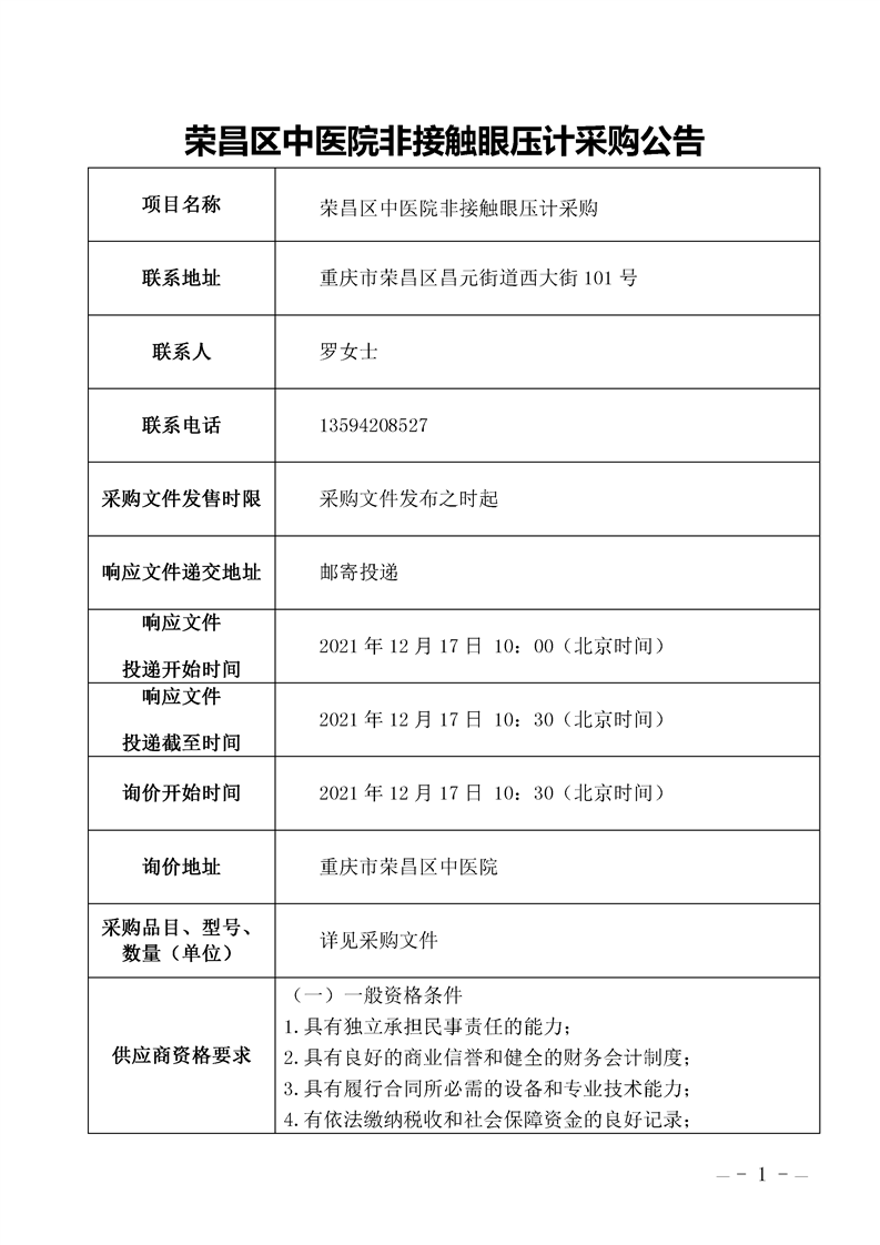 重庆市荣昌区中医院2021年医疗设备需求调研公告