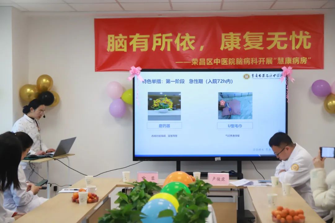 “一科一品”特色护理服务项目近日,荣昌区中医院“一科一品”特色护理服务项目——脑病科“慧康病房”正式启动。院党委书记喻蓉、副院长卢俊霖,脑病科全体医护人员、患者及家属代表共同参与了启动仪式。