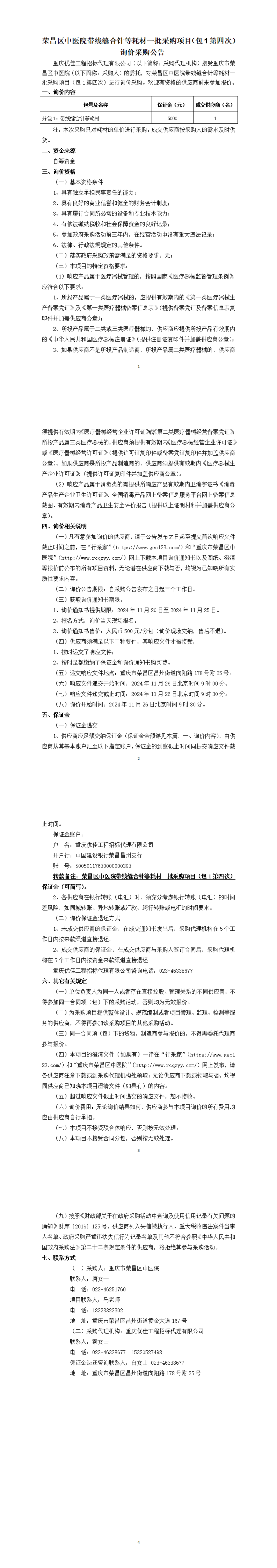 荣昌区中医院带线缝合针等耗材一批采购项目(包1第四次)询价采购公告