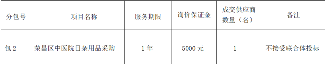 荣昌区中医院办公用品、日杂用品一批采购项目(第二次)--询价保证金。